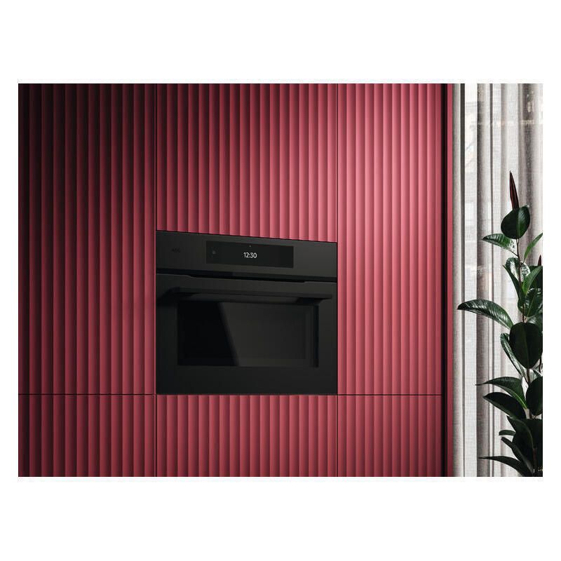 The AEG 60cm Built-In Compact Oven in matte black offers the perfect blend of versatility, performance, and sleek design, all in a space-saving format. Combining the power of a traditional oven with the speed of a microwave, it?s ideal for busy households that need flexibility without sacrificing quality. The intuitive CookSmart Touch+ interface makes navigating settings effortless, while Assisted Cooking suggests the optimal function and temperature for whatever you?re preparing. From perfectly reheated leftovers to evenly roasted vegetables, the built-in Food Sensor ensures everything is cooked just right. The soft-close door adds a premium touch to everyday use, while the 3-layer glass design helps maintain heat inside and keeps the exterior cooler to the touch. Finished in modern matte black, this compact oven delivers powerful performance in a smaller footprint, making it a smart and stylish addition to any contemporary kitchen.