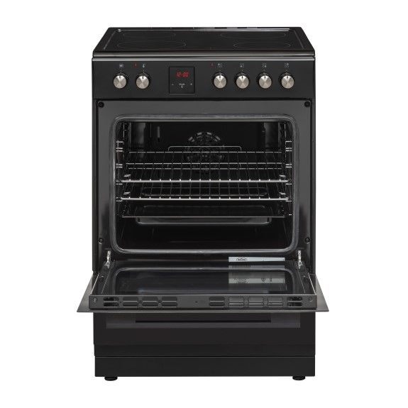 The Belling 60cm Single Door Ceramic Upright Cooker boasts a 76L oven capacity and 4 ceramic burners. It features a fan forced oven with schott glass surface, and comes in a stylish black finish. With 6 oven functions, this cooker is perfect for all your cooking needs.
