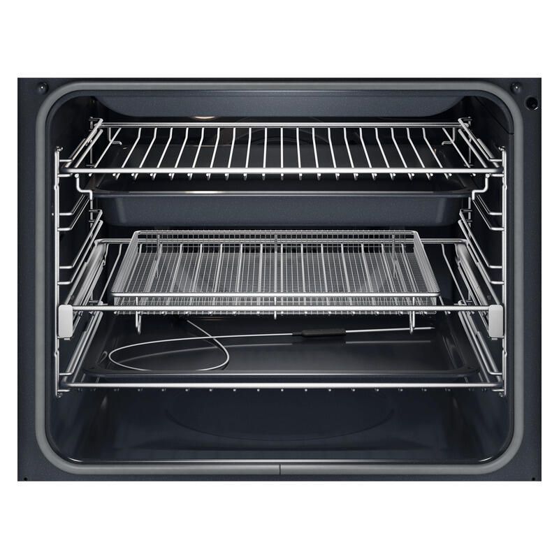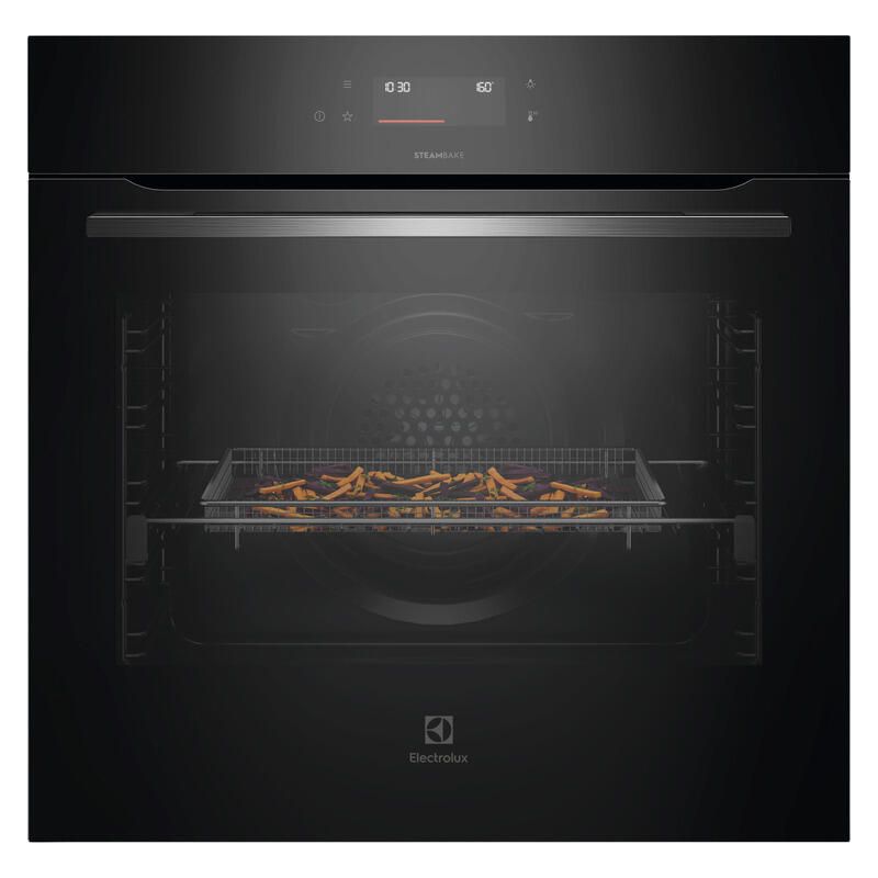 The Electrolux Series 600 Steam Bake 16 Function Pyrolytic Oven is crafted for those who want flexibility, convenience and consistent performance in the kitchen. Steam Bake technology helps deliver perfectly balanced results with a crisp exterior and soft interior, while the AirFryPlus function creates healthier versions of favourite dishes. Its food probe provides added confidence by monitoring internal temperatures, helping achieve precise cooking outcomes. With 46 assisted cooking programs, it supports effortless preparation across a variety of meals. The pyrolytic self cleaning feature simplifies maintenance, and telescopic runners ensure smooth and secure access to dishes. Designed with everyday use in mind, it brings together thoughtful features in a sleek, modern form.