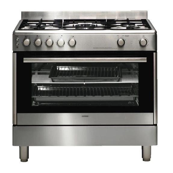 The Euromaid GE90S 900Mm Gas Upright Cooker provides superb gas cooking. Made in Europe the Euromaid GE90S Upright Cooker provides a large 105 litre capacity with a stainless steel finish, a full glass inner door with single hinge construction and a rounded bull-nose design. The gas cooktop provides 5 burners with wok burner, cast iron trivet and a flame failure safety device. The oven has five shelf positions. LPG ready. A fantastic freestanding gas cooker.