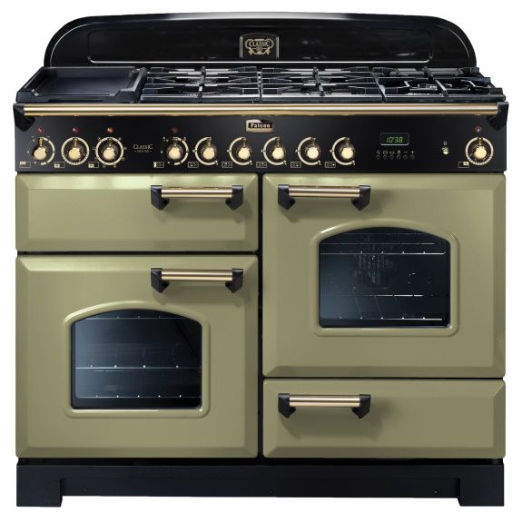 Falcon Classic Deluxe 110cm 5 Burner Duel Fuel Cooker – Olive Green and Brass