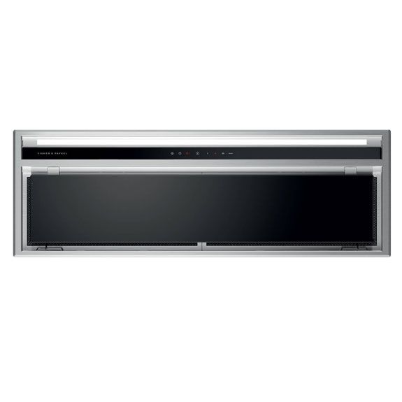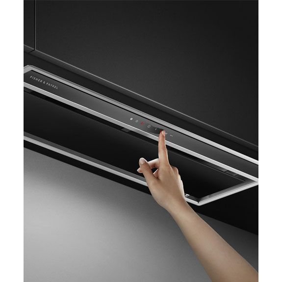Cook and enjoy a fresh atmosphere with Fisher & Paykels 90cm Undermount Rangehood. This rangehood effectively removes cooking smoke, odours and fumes with its two filters and maximum 780m/h airflow rate. Select from four extraction speeds with the rangehoods touch control and see clearly as you cook with the dimmable LED lighting. Extract and maintain consistent results thanks to the clean filter alert which will remind you when its time to clean them. For your convenience, the filters are dishwasher safe, so keeping them clean is effortless. Discreet and integrated into your cabinetry, this Black Glass rangehood with Stainless Steel detailing is perfect for any modern kitchen.