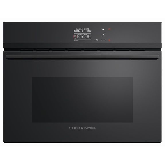 The Fisher & Paykel 60cm Built-In Combination Steam Oven is a versatile kitchen appliance that allows you to cook with steam, convection or a combination of both. It features a large 36-liter capacity, six cooking functions, and 12 pre-set cooking programs for easy and convenient cooking. The oven also comes with a food probe for precise cooking and a self-cleaning function for easy maintenance. The sleek black glass finish and intuitive controls make it a stylish and functional addition to any kitchen.