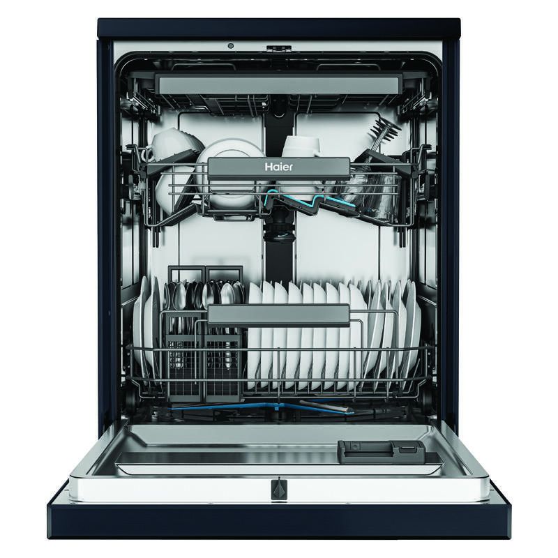 The Haier 15 Place Setting Smart Freestanding Dishwasher in sleek black from the 600 Series offers a powerful blend of style, capacity and smart efficiency for the modern kitchen. With room for up to 15 place settings, it?s perfect for families or those who love entertaining. Designed with advanced wash technology, it delivers a thorough clean every time, while the DualPower Spray Arm ensures powerful water coverage across all levels. The CutleryPlus tray keeps utensils organised and optimally positioned for sparkling results. Choose from eight versatile wash programs to suit everything from everyday loads to delicate glassware, and fine-tune the cycle with four handy wash modifiers including Steam for hygienic cleaning. Operating at a whisper-quiet 42dBA, this dishwasher won?t disturb your evening. Its impressive 5.5 star water rating and 4.5 star energy rating mean it?s not just good for your dishes but also for your utility bills. Whether you?re managing daily mess or hosting a big dinner, this smart freestanding dishwasher makes kitchen clean-up refreshingly simple.