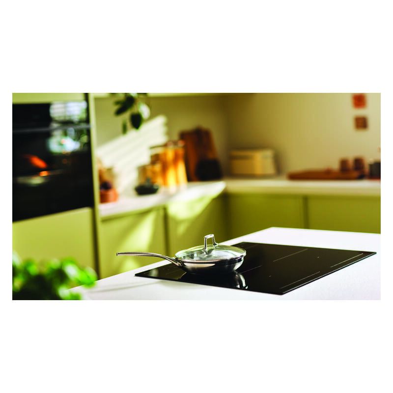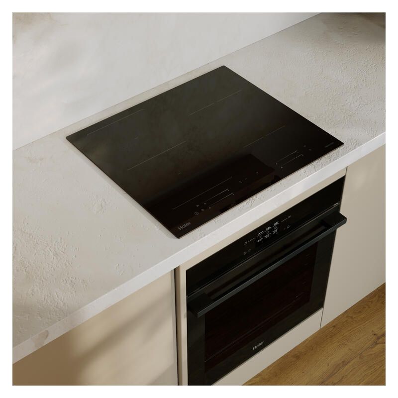 The Haier 60cm 500 Series Induction Cooktop 4 Zone Flexi Zone in Black Glass combines sleek, modern design with intelligent cooking technology for a seamless kitchen experience. Featuring four cooking zones that can be paired to form a large Flexi Zone, it offers flexibility for different cookware sizes and cooking styles. Hood-to-hob connectivity automatically adjusts compatible rangehood settings for optimal ventilation, while the surface stays cool to the touch until cookware is placed, ensuring enhanced safety. Intuitive multi-slider touch controls provide precise heat adjustments with ease, and Wi-Fi connectivity through the SmartHQ app lets you monitor and control your cooktop remotely. Finished in elegant black glass, this cooktop brings together power, performance, and sophistication for effortless everyday cooking.