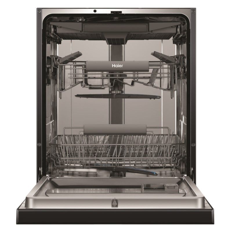 The Haier Built Under Steam Dishwasher in Black combines powerful performance with elegant design, delivering sparkling clean results every time. With 8 wash programs and 4 wash modifiers, including a Steam option, it effectively tackles everything from delicate glassware to heavily soiled pots and pans. Boasting a 5.5-star water rating and 4.5-star energy rating, it offers exceptional efficiency for eco-conscious households. Wi-Fi connectivity allows you to control and monitor cycles remotely through the SmartHQ app, while helpful alerts keep you informed. At the end of each wash, the automatic door opens to improve drying performance naturally. Inside, the height-adjustable middle basket, full-width cutlery tray, foldable cup racks, and dedicated wine glass stemware supports provide flexible storage for every load. Stylish, efficient, and smartly designed, this Haier dishwasher makes cleaning up after any meal effortless.