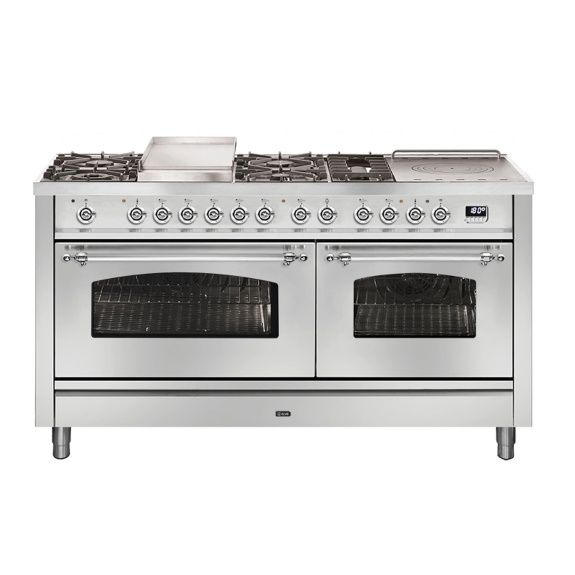The Ilve Freestanding double cooker features a 7 Burner Cooktop and Double Electric Ovens. Featuring 97 liters; Small oven 43 liters. The Large oven Multifunction with 15 positions. Small oven Static with 5 positions. For home safety it boasts a Child safety lock. You can always keep and eye on your meals with the Oven door with triple glass. Family meals made easy with a Large oven Rotisserie. Integrated frying thermometer; Small oven Rotisserie,Large oven Soft-closing oven door and box; Small oven Soft-closing oven door.,Made In Italy,750mm x 1200mm x 600mm