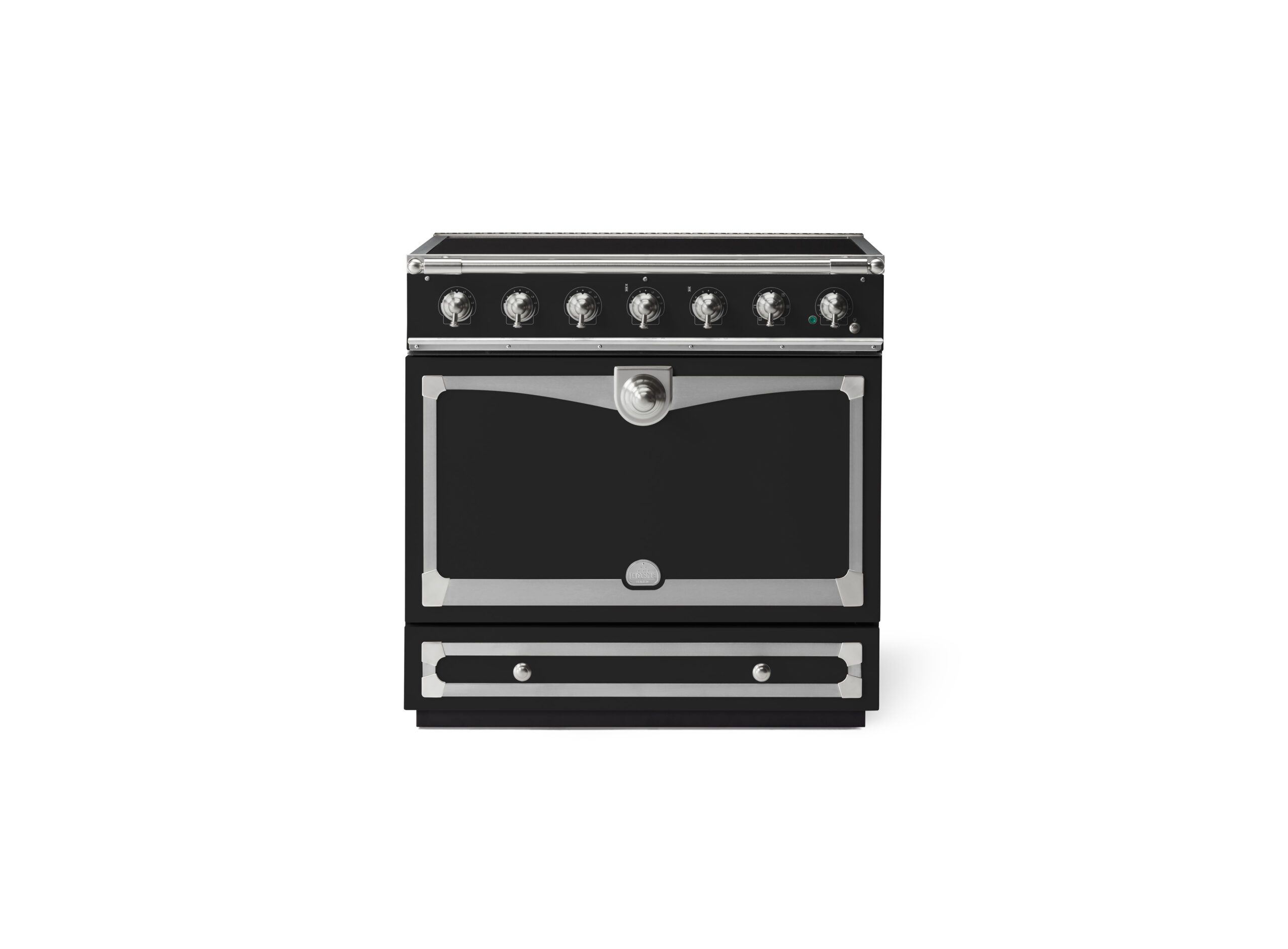 LaCornue Albertine 90cm Induction Cooker – Matt Black with Brushed Nickel & Stainless Steel Trim