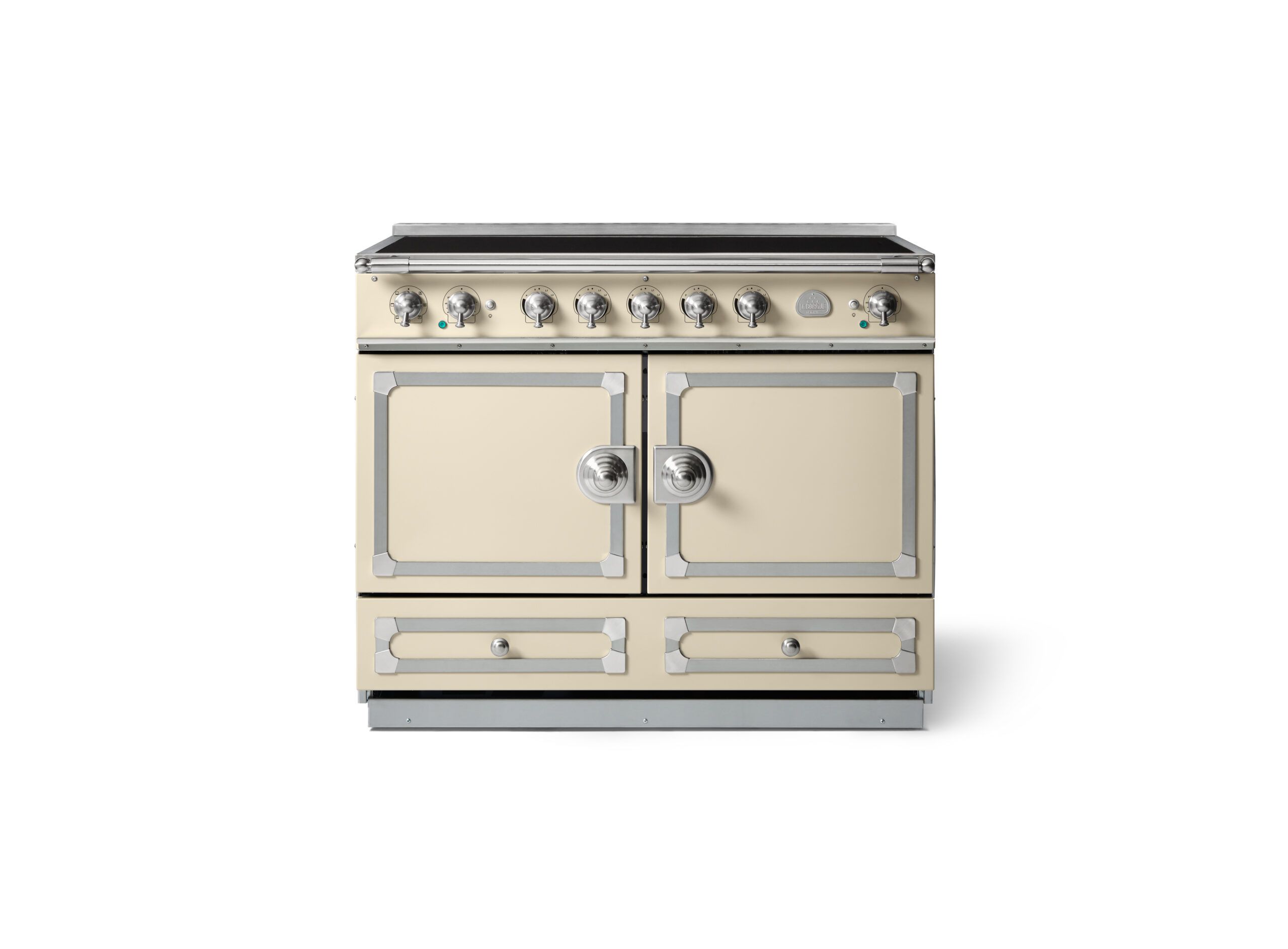*Special Order Only. Please check with us for current availability and lead times. The LaCornue Cornufé 110cm Induction Cooker combines timeless French craftsmanship with powerful modern cooking technology. Designed to make a striking statement in any kitchen, this elegant 110cm cooker features a sleek induction cooktop with five cooking zones that deliver rapid, precise heat while remaining energy efficient. Built in pan detection ensures the cooktop only activates when cookware is present, while a child lock adds an extra layer of safety for busy households. Beneath the cooktop, the generously sized ovens offer a combined 158 litre capacity with multifunction and fan cooking, providing the flexibility to bake, roast and grill multiple dishes at once with consistent results. Five shelf levels allow for easy organisation when preparing larger meals or entertaining guests, and the oven temperature range of 80°C to 240°C supports everything from gentle slow cooking to high temperature roasting. The Cornufé 110cm induction cooker brings together refined design, spacious capacity and advanced performance for a truly exceptional cooking experience.