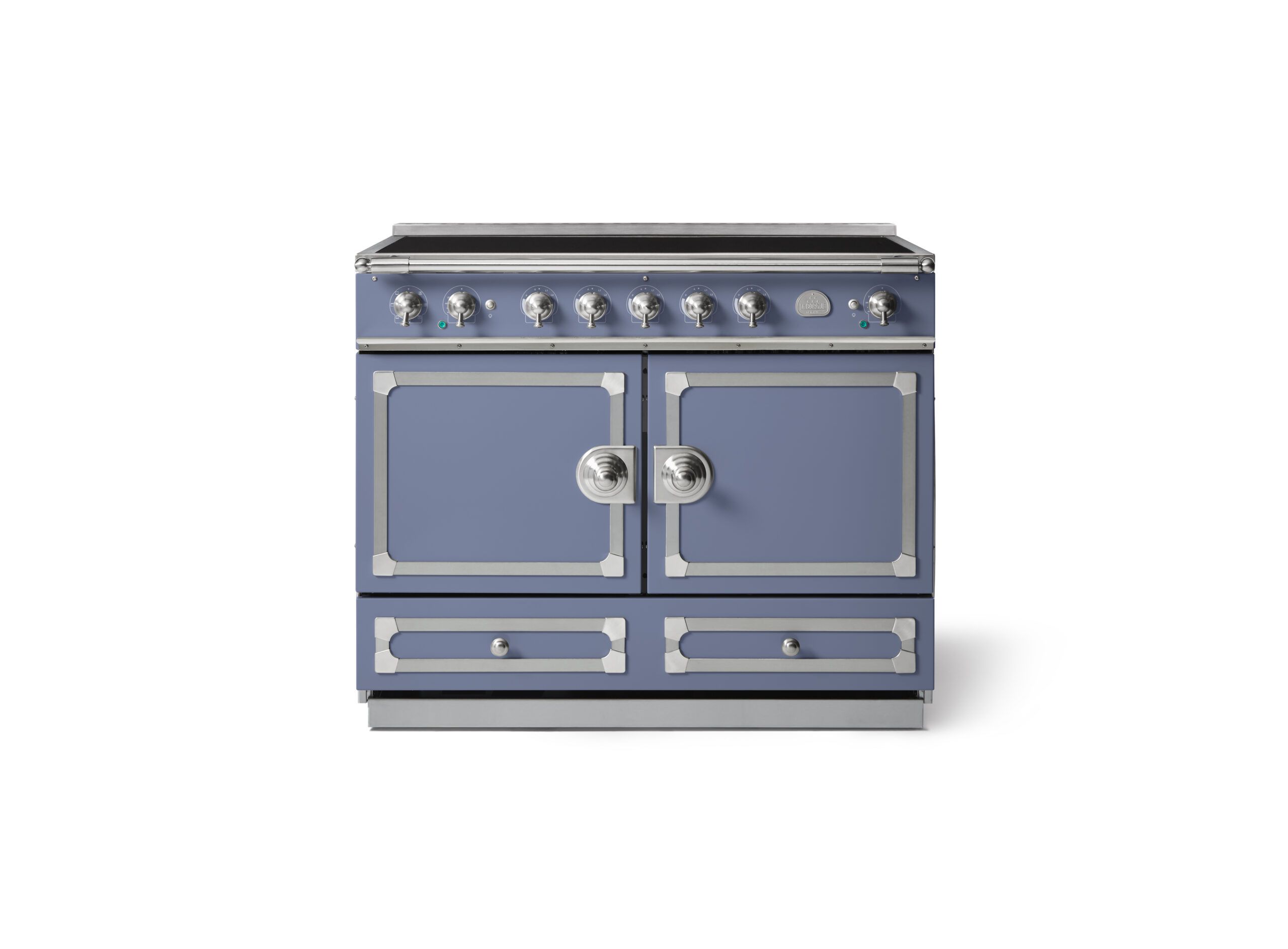 LaCornue Cornufé 110cm Induction Cooker – Paris Blue with Brushed Nickel & Stainless Steel Trim