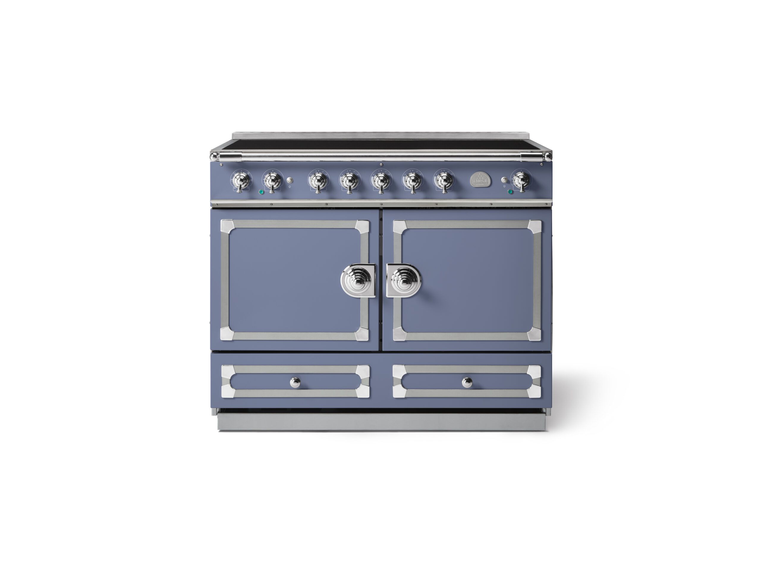 LaCornue Cornufé 110cm Induction Cooker – Paris Blue with Polished Chrome & Stainless Steel Trim