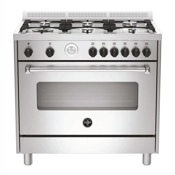 Engineered for those who love to cook with confidence, the La Germania 90cm 6-Burner Electric Oven Grill BX combines powerful performance with refined details. With six gas burners, including a dual 14MJ wok burner, it offers incredible versatility for everything from high-heat searing to gentle simmering. The spacious 142L electric oven delivers 11 multi-function settings to suit any recipe, supported by catalytic self-cleaning liners and telescopic runners that make both cooking and cleaning more effortless. A triple-glazed door with extractable inner glass enhances insulation while making it easy to keep the oven spotless, and the anti-slam mechanism adds a touch of safety and sophistication. Built-in features like a dial thermometer provide at-a-glance temperature monitoring, and flame failure devices offer peace of mind across all burners. Finished in sleek stainless steel with cast iron trivets and a practical storage compartment, this freestanding cooker is as durable as it is stylish. Designed for a 15 amp connection, it?s an ideal centrepiece for kitchens where performance and polish go hand in hand.