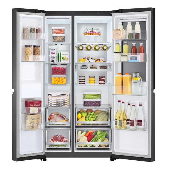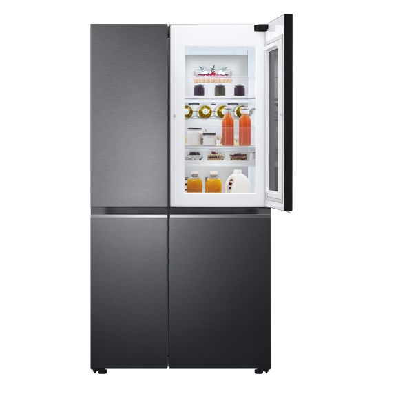 This InstaView Door-in-Door Fridge by LG comes with 655 Litre capacity. Enjoy new design and plenty of storage space with this refrigerator. It provides you with wide open shelf space and allows more storage room. Wine Rack can store up to 4 bottles. Utility Box is excellent at storing smaller food items. Pure N Fresh air filtration system forces the air through the carbon deodoriser and re-circulates across the shelves. In addition to that, the lid of Moist Balance Crisper has a lattice structure that retains evaporated moisture from vegetables allowing the food to stay fresh for longer period. You can change the settings of your fridge via LG ThinQ App, simply download it into your gadget.