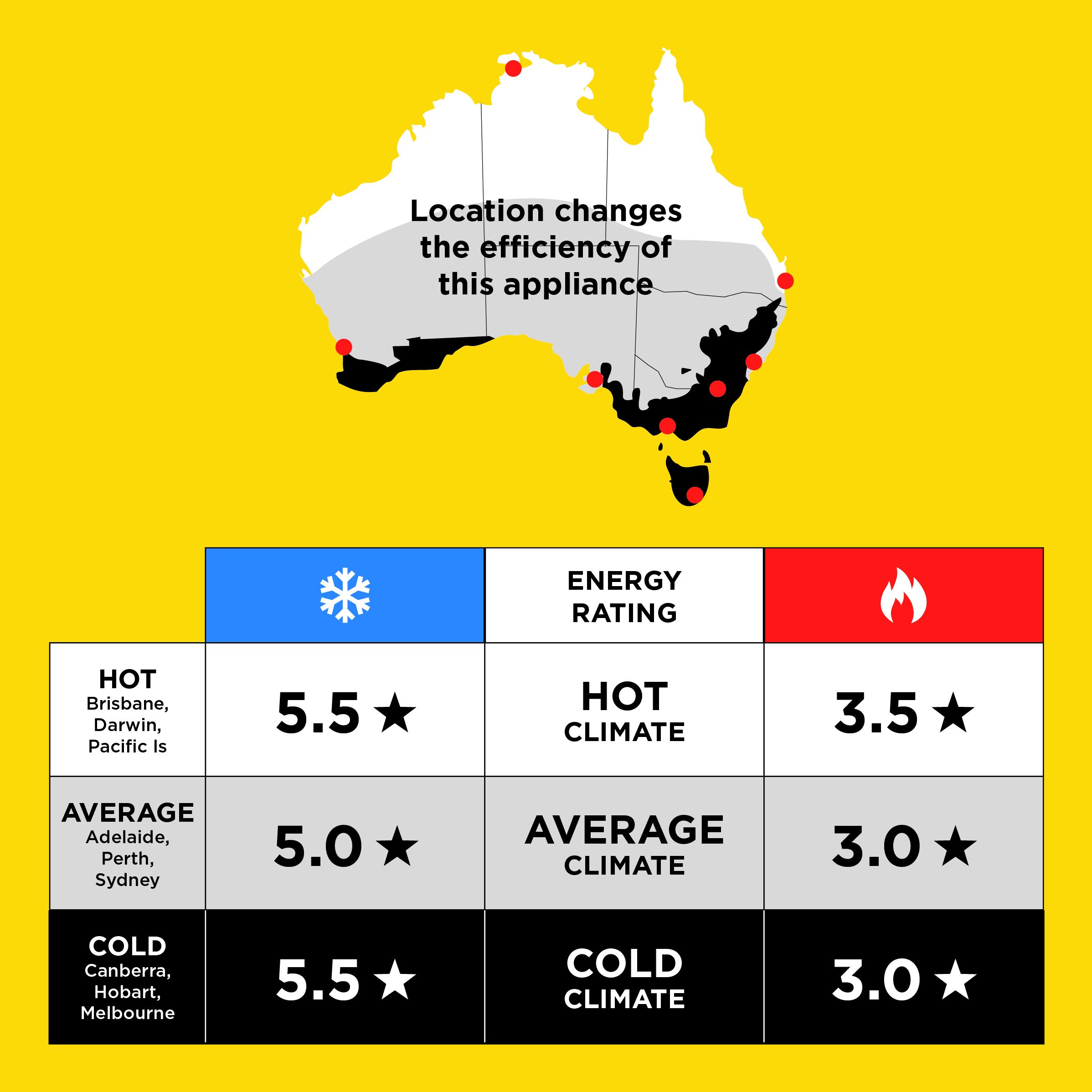 - 3.5 / 3.0 / 3.0kW Zerl Star Energy Rating Heating