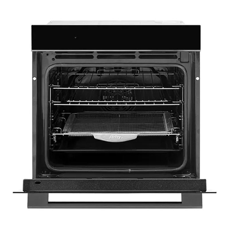 Elevate your cooking journey with the Omega 60cm Built-In Pyro Oven, featuring Airfry technology in a striking Midnight finish. This oven boasts a generous 85L gross capacity, perfect for all your baking and roasting endeavors. The removable black tinted triple glazed glass door, complemented by an aluminium handle, combines robustness with a touch of sophistication. The full digital touch control LED display ensures effortless operation and pinpoint accuracy. Equipped with telescopic runners and 5 shelving positions, as well as a suite of accessories, this oven offers unparalleled cooking flexibility. It operates across a broad temperature spectrum of 60-250?C, accommodating a diverse array of recipes. The pyrolytic self-cleaning function offers hassle-free maintenance, and the 15 Amp hardwired installation is adaptable for both underbench and tower configurations, making it an ideal addition to any modern kitchen.