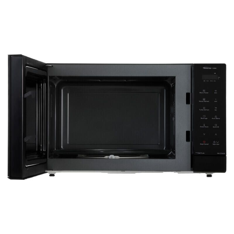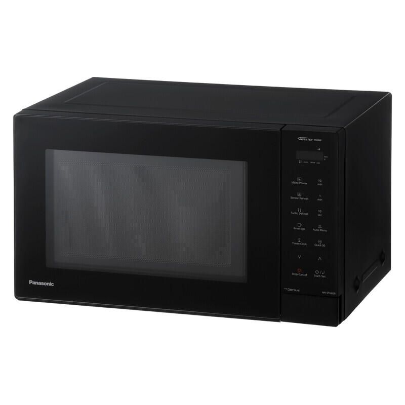 The Panasonic 32L 1100W Solo Inverter Microwave in sleek black glass is a smart, stylish addition to any modern kitchen, combining powerful performance with intelligent features. At the heart of its design is Panasonic?s built-in Genius Sensor, which automatically adjusts cooking and reheating times for optimal results, taking the guesswork out of mealtimes. The spacious 340mm turntable accommodates larger plates and dishes, while Inverter Microwave Technology ensures even heat distribution for consistently well-cooked food. With 1100W of power and a choice of six variable power levels, it handles everything from quick reheats to full meal preparation with ease. The intuitive control panel includes 20 auto menus, auto reheat and Turbo Defrost functions, along with a child lock for added safety. Whether you?re warming leftovers or cooking from scratch, the Genius Sensor and versatile settings make it simple and stress-free. Finished in a sophisticated black glass, this microwave looks as good as it performs, and for those after a seamless built-in look, an optional trim kit is available.