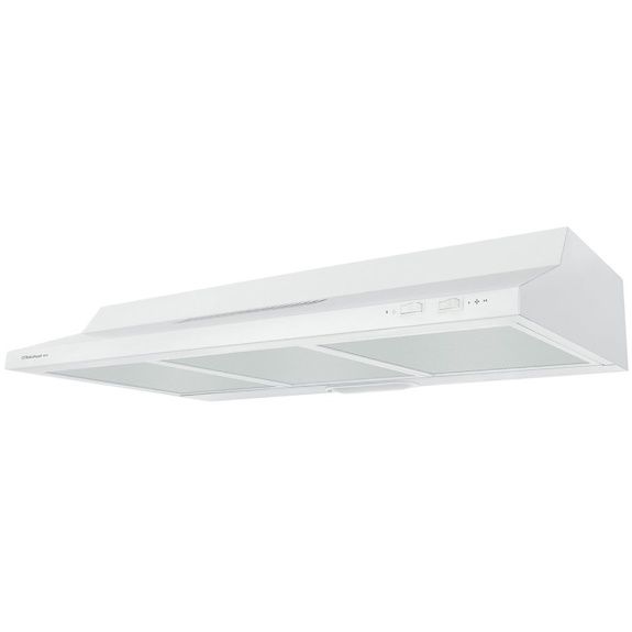 this 90cm rangehood from Robinhood creates a comfortable cooking environment for your kitchen. The 2 halogen lights allow you to cook whenever you need to, while the 2 speeds allow you to easily extract vapours and fumes from your cooking space. The clean white finish fits seamlessly with any kitchen aesthetic.