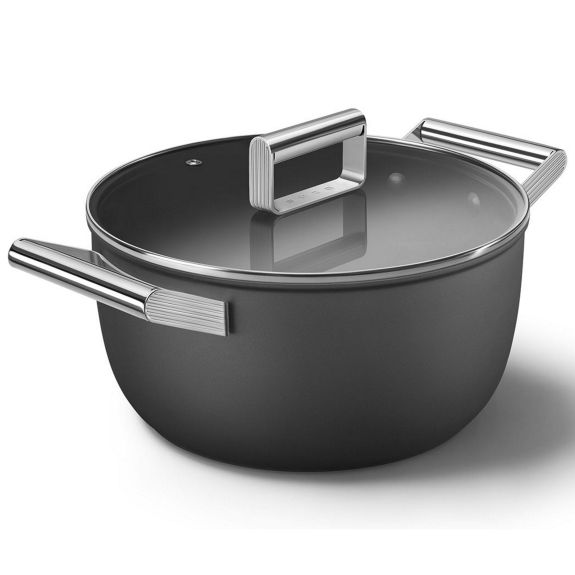 In their new range of cookware, Smeg has introduced the 50s Style 24cm Casserole Dish. This piece of cookware is finished in a cold-forged aluminium and covered in an stylish matte black with sturdy stainless steel handles to ensure a easy and safe grip. Prepare your favourite recipes for your dinner guests as the tempered glass lid helps to preserve the flavours and moisture while cooking so you can serve the freshest dishes. You can also pick up this timeless piece of cookware in a Matte Cream and Matte Red for the extra pop of colour to your kitchen.