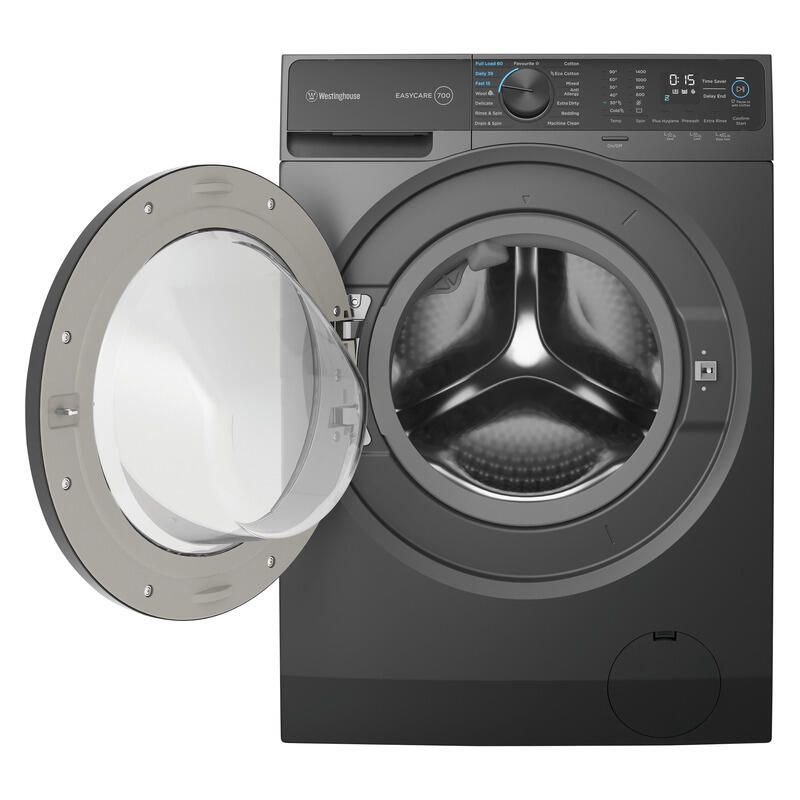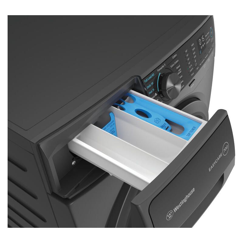 The Westinghouse 10kg Front Load Washer in metallic grey offers a practical and efficient solution for busy households, combining generous capacity with time-saving features. Designed to handle larger loads with ease, it?s ideal for families looking to streamline their laundry routine. The innovative PREMIX+ technology ensures detergent is thoroughly dissolved before reaching clothes, helping to deliver a more even and effective clean while reducing residue. For added convenience, the Full Load 60 program washes a complete load in just one hour, while the Fast 15 cycle is perfect for quickly refreshing lightly soiled items. The Daily 39 setting provides a balanced option for everyday washing, delivering reliable results in under 40 minutes. Auto water level sensing intelligently adjusts water usage based on the size of each load, improving efficiency and helping to conserve resources. Finished in a sleek metallic grey, this washer blends performance and style for modern living.