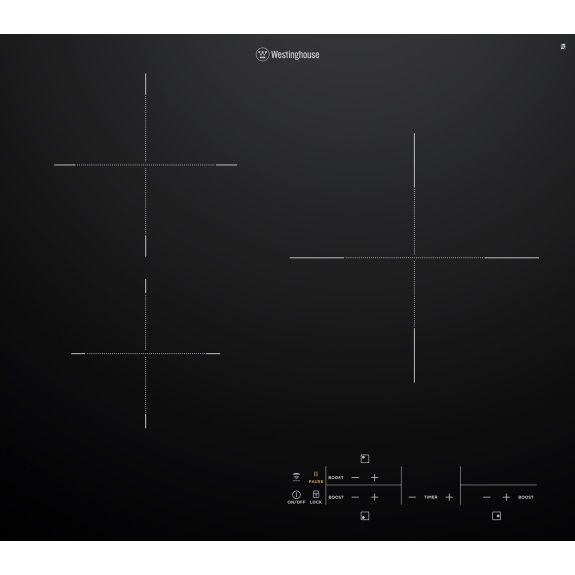With varied functionality and sleek design, this 60cm Induction Cooktop from Westinghouse delivers a consistent cooking experience time after time. The 3 individual zones cater to pots and pans of all sizes, while the touch control panel is easy to use. With Hob2Hood technology, you can pair your Westinghouse cooktop with a compatible Westinghouse rangehood, allowing you to seamlessly control both. Rapidly boil or heat up a pan with the assist of PowerBoost, and with the pause function all zones in operation will drop to 'Keep Warm' mode. Finished with sleek black ceramic glass, this cooktop will compliment any kitchen.