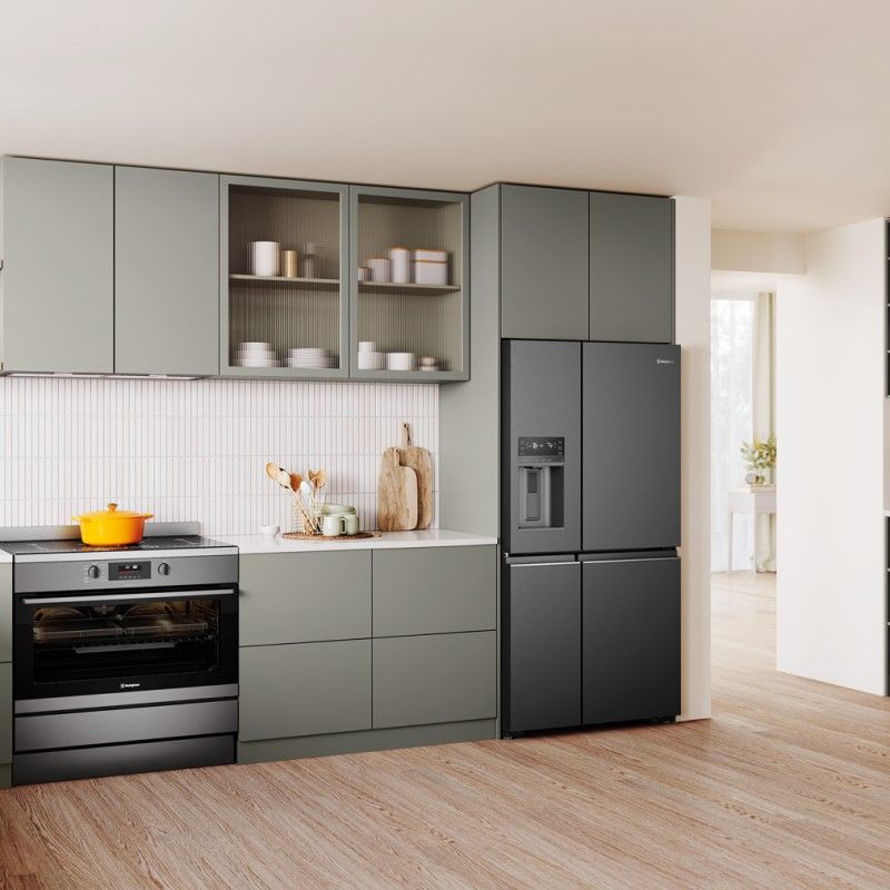 Revamp your kitchen with the sleek matte black quad door fridge, a 609L capacity marvel that accommodates your family's groceries with ease. Its matte black finish is not only stylish but also practical, effortlessly repelling fingerprints and exuding a modern, sophisticated vibe. Enjoy chilled beverages on demand with the convenient dispenser that offers fresh, filtered water and a choice of cubed or crushed ice at the push of a button, catering to all your family's needs.