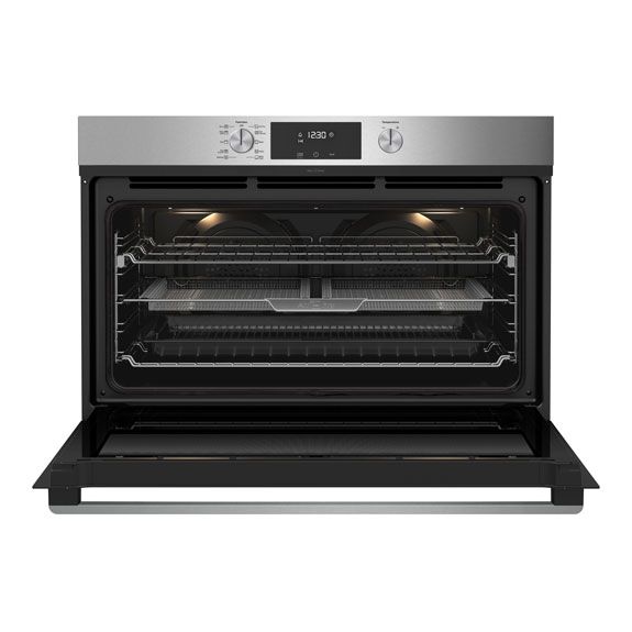 This 90cm Electric Oven by Westinghouse comes with 125L of total capacity. Featuring Air Fry and Fast Heat Up modes to satisfy all your baking needs. Choose a favourite setting and programmable timer will look after your food. The twin fan system will ensure an even heat distribution throughout the whole cooking process while quadruple glazed door will create a safe space and comfort.