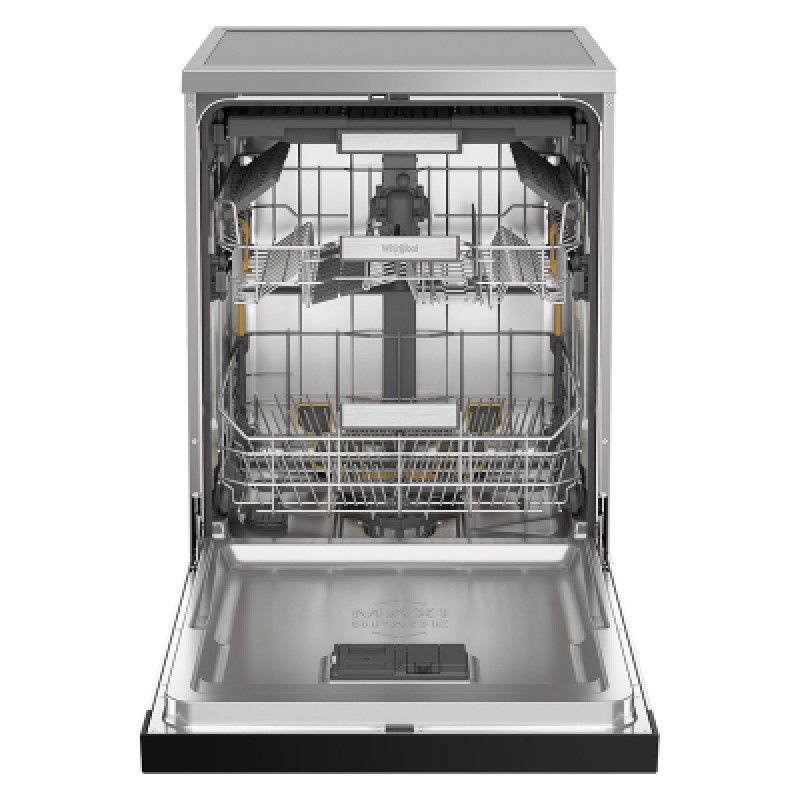The Whirlpool 60cm Freestanding Dishwasher in stainless steel is designed to deliver powerful, efficient cleaning with intelligent features tailored to busy households. With a 14 place setting capacity, it easily handles everything from weeknight dinners to larger weekend loads. Whirlpool?s innovative 6th Sense Technology automatically detects the level of soiling and adjusts the wash accordingly, saving both time and resources. The Maxi Space and Multizone options provide maximum flexibility, letting you wash a full load or just one section to suit your needs. For tough, baked-on messes, Power Clean Pro uses targeted high-pressure jets at the back of the machine to remove stubborn residue without pre-rinsing. The Sanitisation function ensures a hygienic finish, eliminating up to 99.999% of bacteria for added peace of mind. With the Half Load setting, you can still wash smaller amounts efficiently, and the Dual Inverter motor ensures quiet, reliable performance throughout. Finished in sleek stainless steel, this dishwasher is a modern essential that delivers spotless results with minimal effort.
