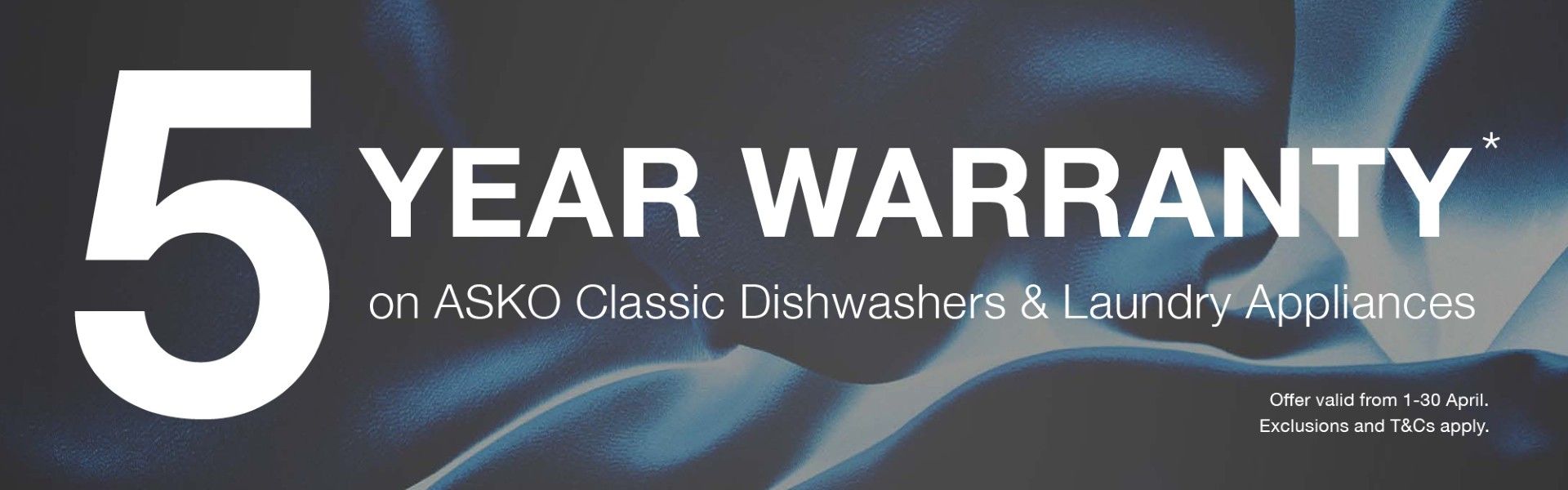 Enjoy peace of mind with a 5-year warranty on select ASKO Classic dishwashers and laundry appliances. Register your purchase to take advantage of this extended coverage and ensure long-lasting performance. T&Cs apply.