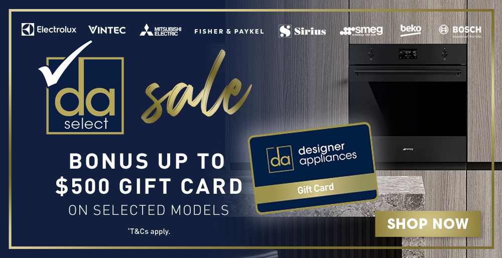 Purchase eligible DA Select models during the promotional period and receive a bonus Designer Appliances gift card valued up to $500.