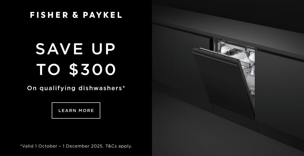 Save up to $300 on select dishwashers, with discounts available across eligible models. Offer valid from 1 October to 1 December 2025. Can be combined with other qualifying promotions.