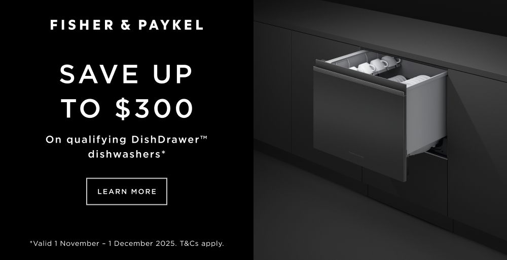 Save up to $300 on select DishDrawer dishwashers, with discounts available across eligible models. Valid from 1st November to 1st December 2025. Can be combined with other qualifying promotions.