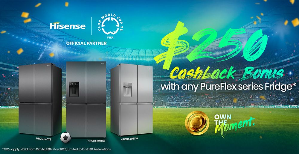 Purchase a select PureFlex Series Fridge and get $250 cashback. Simply claim online via the Hisense website after your eligible purchase. Don’t miss this great chance to save on stylish, flexible refrigeration for your home.