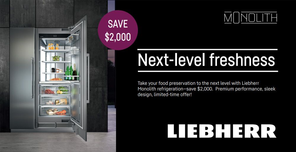 Save $2000 on select Monolith appliances for a limited time. Enjoy premium performance and sleek design at exceptional value—only while stocks last. Offer applies to eligible models; check in-store or online for full details.