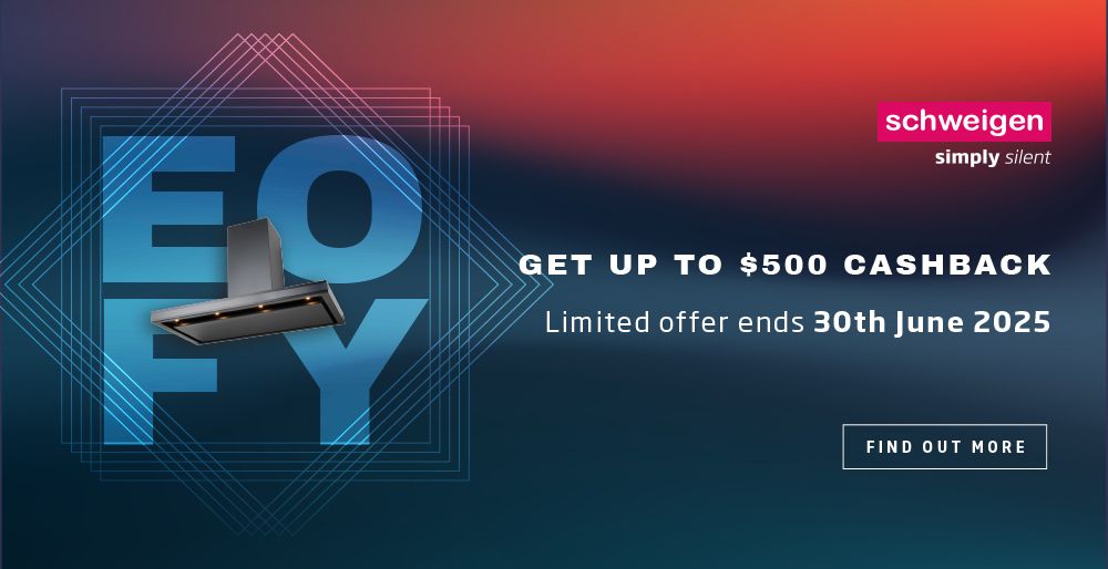 Purchase an eligible Schweigen appliance between 1–30 June 2025 and receive up to $500 cashback, based on your purchase price. Valid for select models only. Claim online with proof of purchase and installation image.