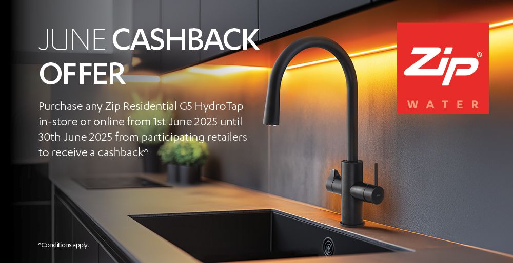 Get up to $300 cashback when you buy an eligible Zip Residential G5 HydroTap. Cashback value depends on the model selected—choose from Boiling, Chilled, Sparkling, Ambient or combinations.